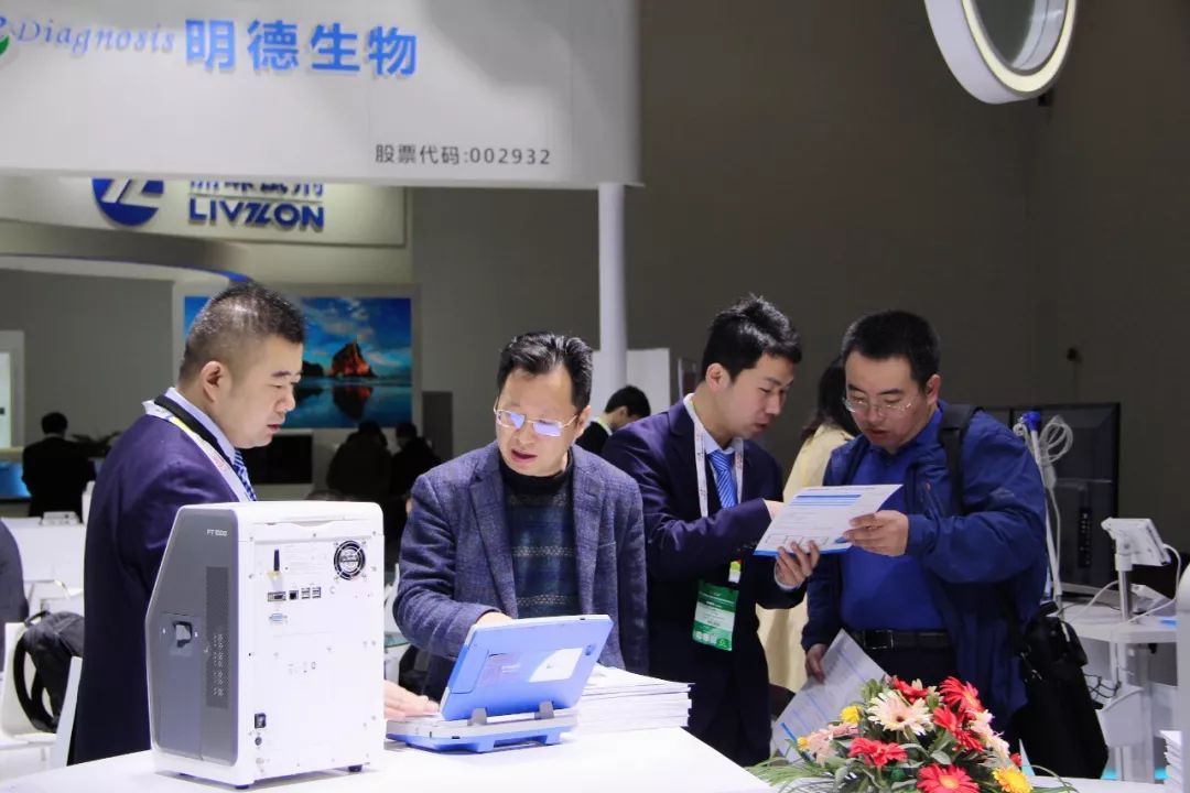 明德生物新產(chǎn)品吸引了眾多專業(yè)觀眾前來咨詢交流,化學(xué)發(fā)光、血氣、分子診斷、胸痛中心板塊的展臺前都聚集了大量用戶。展會攜帶的2000多份產(chǎn)品資料,全部被觀眾領(lǐng)完。明德人個個精神抖擻,耐心、細心解答客戶們的提問。