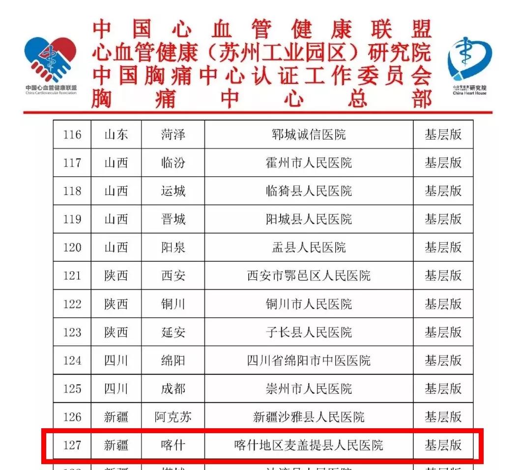 2019年7月14日,胸痛中心總部發(fā)布《關(guān)于2019年度第二批次中國(guó)胸痛中心及基層胸痛中心通過(guò)認(rèn)證單位公告》,146家胸痛中心建設(shè)單位順利通過(guò)認(rèn)證,由明德生物全程參與指導(dǎo)認(rèn)證的新疆喀什地區(qū)麥蓋提縣人民醫(yī)院通過(guò)認(rèn)證!