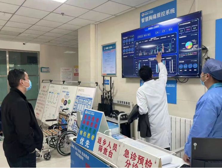 2021年10月,貴德縣人民醫(yī)院在明德生物的助力下率先在省內(nèi)引進智慧胸痛信息化系統(tǒng),整合院內(nèi)設備、信息系統(tǒng),為患者提供胸痛中心信息化診療支持。同時,醫(yī)院優(yōu)化診療服務,打造標準化、規(guī)范化胸痛救治流程,以信息化流程驅(qū)動診療業(yè)務。為急性胸痛患者架起一條救治“高速路”。當日開通胸痛綠色通道的有多少人?胸痛病患來院方式是什么?在胸痛系統(tǒng)大屏可以清晰明了地看到。